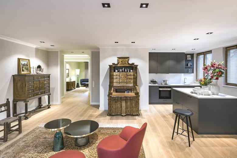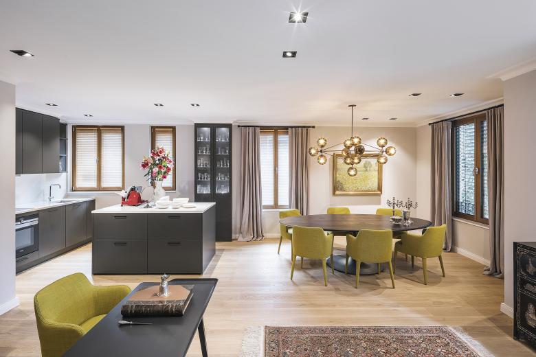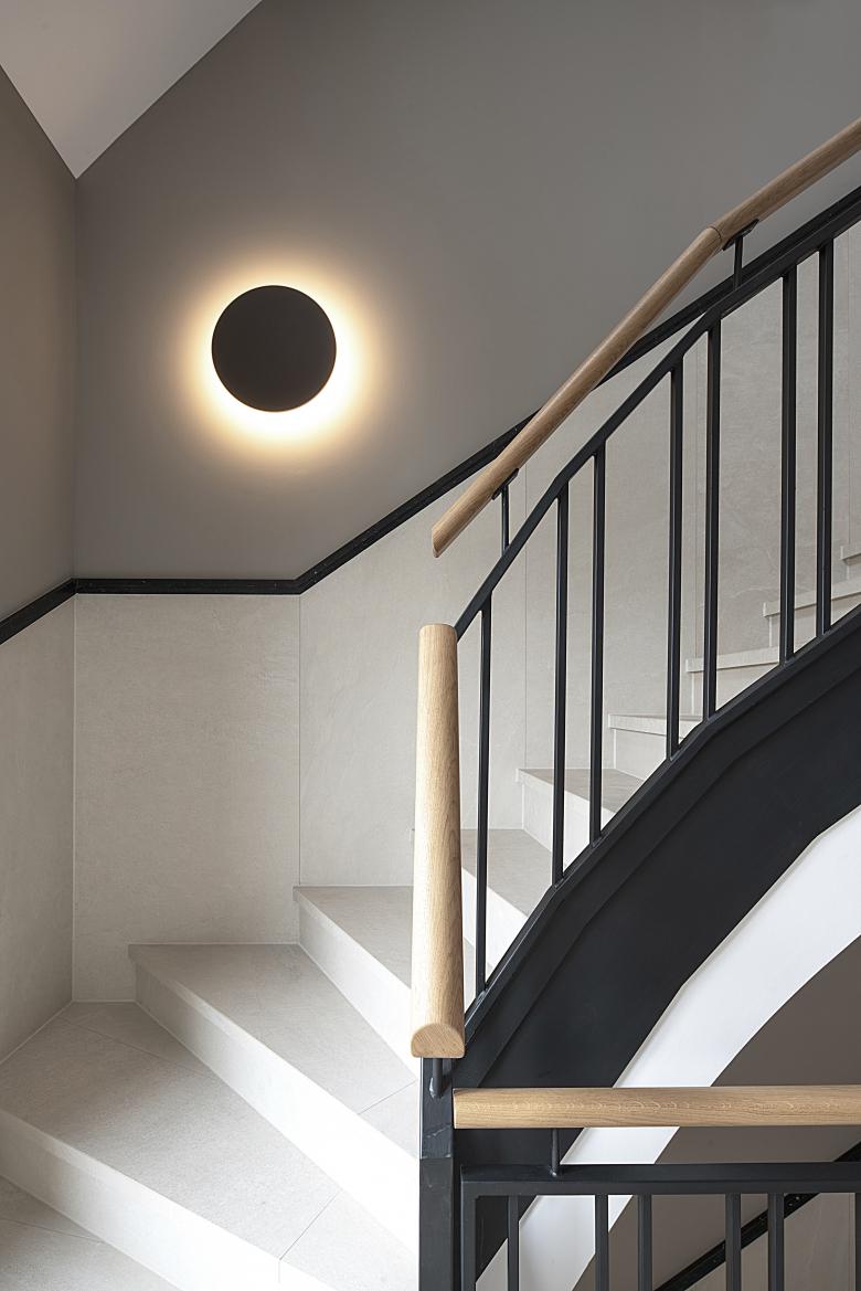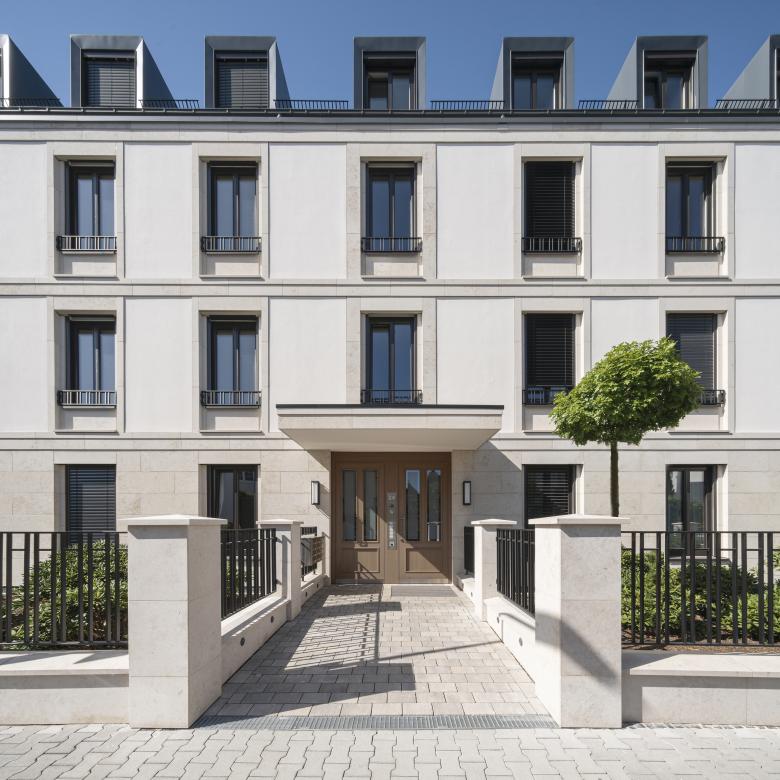 Im Frankfurter Malerviertel entstand in nur 1.5 Jahren Bauzeit Ende Oktober 2018 eine anspruchsvolle Stadtvilla. Hollin + Radoske hat alle Leistungsphasen von der Grundlagenermittlung über Vorentwurf und Entwurf, Ausführungsplanung und die Bauleitung erbracht. Auch die Innenarchitektur wurde komplett von Hollin + Radoske entworfen und umgesetzt. Eine klassische, moderne Fassade mit Naturstein und Putz, Metallarbeiten in Schwarz, kontrastieren mit aufwendigen, massiven Fensterumrahmungen aus Muschelkalk mit integriertem Sonnenschutz und dem anthrazitfarbenen Dach mit Gaupen in Zinkblech.