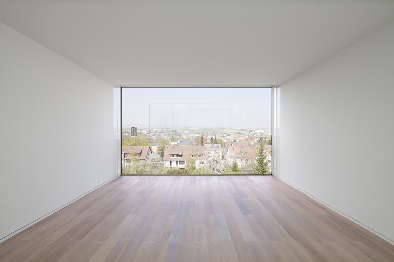 Durch den Umbau dieses Dachgeschosses in nutzbaren Wohnraum wurde ein großer Raum gewonnen, der durch eine großzügige Glasfront einen Blick auf die Wetterau gewährt.