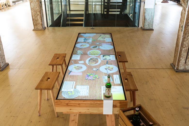 Die Themenbereiche werden jeweils von einem Medienexponat eröffnet. Zum Auftakt bietet eine überdimensionale, interaktive Faltkarte einen virtuellen Rundgang durch die Stadt an. Wie der Zyklus des Hopfens den Rhythmus der Stadt und ihrer Bewohner bestimmt, wird im „Panorama Hopfenjahr“ erlebbar. Der 180-Grad Film nimmt den Besucher mit auf eine Zeitreise durch zwölf Monate Leben in Spalt mit dem Hopfen. Im begehbaren Braukessel steht alleine die Bierherstellung mit ihrer historischen Entwicklung und den biochemischen Vorgängen im Mittelpunkt. Der Interaktive Biertisch zeigt die Bierkultur in verschiedenen Ländern, in denen Spalter Hopfen zum Brauen verwendet wird. Eine Bierflasche wird hierfür auf ein Sensorfeld gestellt und löst das virtuelle Eindecken auf der Medienfläche aus, die die gesamte Tischplatte umfasst. Der sich deckende Tisch ist zusätzlich mit Fakten und Anekdoten zur Bierkultur der einzelnen Länder angereichert.