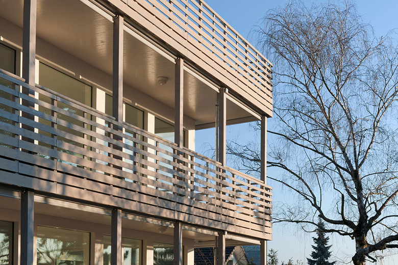 Der Anbau wurde mit vorgefertigten Holzelementen ausgeführt. Die überdurchschnittliche Wärmedämmung der Fassaden und die Nutzung der passiven Solarenergie senken zusammen mit der weit entwickelten Gebäudetechnik den Energieverbrauch etwa um den Faktor 8. Der Strombedarf wird komplett durch eine dachintegrierte Photovoltaikanlage gedeckt.