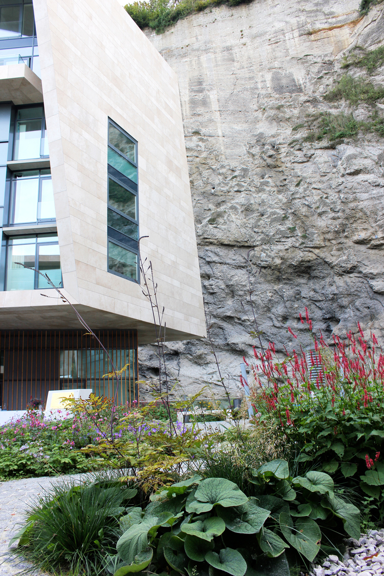 Der Gestaltung des Geländes der ehemaligen Sternbrauerei kommt gemeinsam mit der Gebäudearchitektur eine wichtige Stellung in der Positionierung der Anlage als exklusiver Wohn-, Wellness- und Aufenthaltsort zu. Die Außenanlagen verschränken sich mit den Gebäuden, die Grenzen zwischen Innen und Außen fließen ineinander, ein prägendes Bild für die Einheit von Gebäude und Freiflächen entsteht. Die Landschaft bringt in diese Verbindung eigenständige Werte ein, die in Übereinstimmung mit dem architektonischen Entwurf, der Tektonik der Landschaft, der Kanten und Einschnitte in Wert gesetzt: Künstliches trifft auf Natürliches.