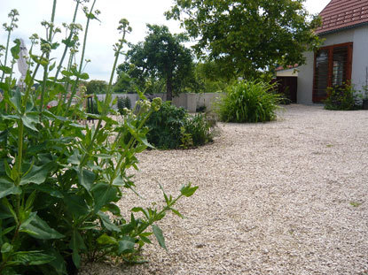 An der Grenze Weinviertel zum Waldviertel in einer vielfältigen Landschaft wurde der Freiraum zwischen den beiden Trakten eines ehemaligen Winzerhofes in Schiltern neu gestaltet. Im Gegensatz zur kleinteiligen Landschaft sollte im Innenhof eine großzügige klare, geordnete, helle befestigte Fläche entstehen, die tauglich für die Alltagsnutzung ist und Verbindung zwischen den beiden Hoftrakten herstellt. Die Idee war aufgrund vielfältiger Nutzungsanforderungen kleine Gartenparzellen „PLOTS“ anzulegen. Über den Hof wurde ein Raster gelegt und mit den Wegführungen, Zufahrten überlagert. Jeder PLOT ist ein eigener Gartenteil mit spezifischer Bepflanzung oder Funktion: der HOTSPOT als Feuerplatz, der WATERPLOT als Freidusche, KÜCHENPLOT als Kräuterbeet und PFLANZENPLOTS mit verschiedensten Blühakzenten. Sollten sich künftig mal Kinder im Alltag dort aufhalten, so wäre es leicht einen PLOT von der Bepflanzung zu befreien und daraus einen SANDSPIELPLOT anzulegen.