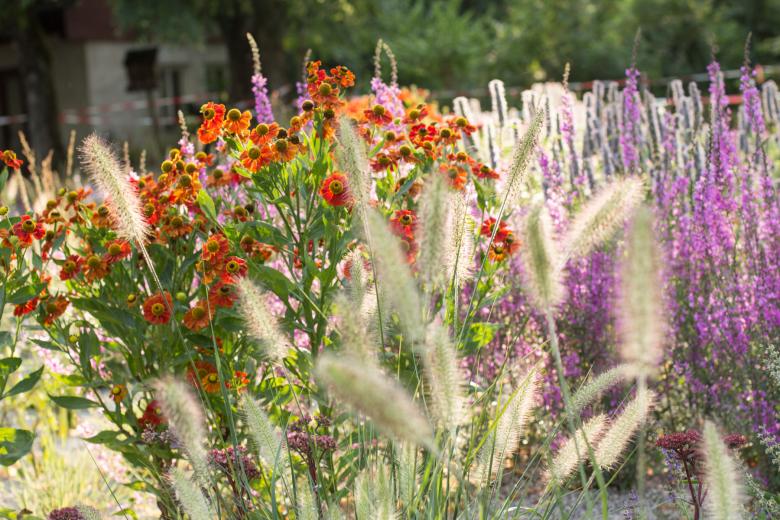 Durch die Bepflanzung wird eine neue Raumwirkung erzielt und die Nutzbarkeit des Parks verbessert, der zum Verweilen und Picknicken einlädt. Die Pflanzenauswahl erfolgt nach Blühzeiten, die den Jahresrhythmen folgen und jeden Monat für vielfältige Blühaspekte sorgen. Die Pflege der Pflanzbeete ist mit 2x Jäten pro Jahr und 1-maligen Rückschnitt im Frühjahr sehr gering. Die Böschung entlang der Bahn wurde mit blühenden Gehölzen und Stauden ergänzt. Ein attraktiver Waldsaum entstand.