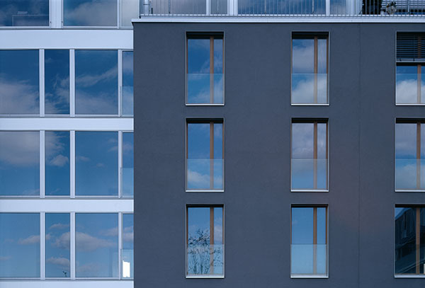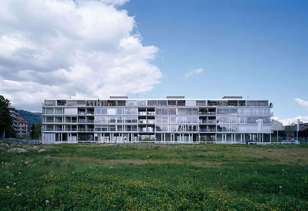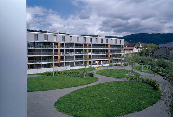 Das winkelförmige Gebäude definiert entlang der Schönistrasse und der Salomegasse einen klar strukturierten Strassenraum und bildet auf der gegenüberliegenden Seite einen grünen Hof. Dieser baumbestandene Park, welcher direkt an die freigelegte Schüss grenzt, wird zum prägenden Element der neuen Überbauung. Mittels drei Durchgängen im Erdgeschoss steht der neue Grünraum in engem Bezug zur Salomegasse. Entsprechend der Ausrichtung der Baukörper werden unterschiedliche Wohnungstypen ausgebildet. Alle Wohnungen profitieren vom Ausblick auf den zentralen Baumplatz und verfügen damit über einen direkten Bezug zum attraktiven Schüssufer. Die Atelier- und Dienstleistungsbereiche im Erdgeschoss werden an der Salomegasse in überhohen Räumen angeordnet.