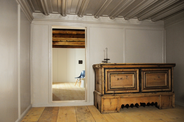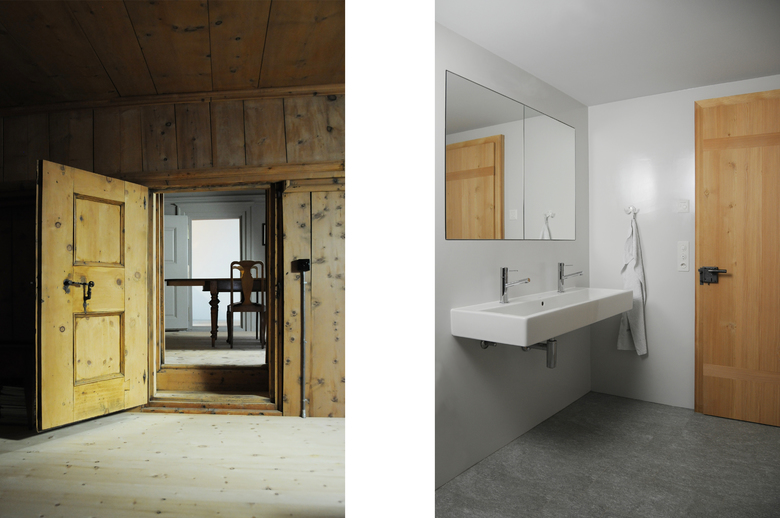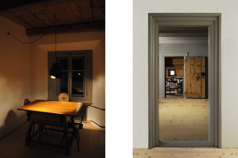Umbau des 1. Obergeschosses in einem ehemaligen Engadiner Bauernhaus. In den 60er Jahren des 20. Jahrhunderts wurden auf dieser Etage 2 Wohnungen eingebaut. Diese wurden nun umgebaut. Es entstand eine grosse 4 Zimmer Wohnung und ein Studio. Viele Elemente aus früheren Zeiten wurden in die beiden Wohnungen integriert. Die neu hinzugefügten Elemente wurden in einer modernen Formensprache ausgeführt.