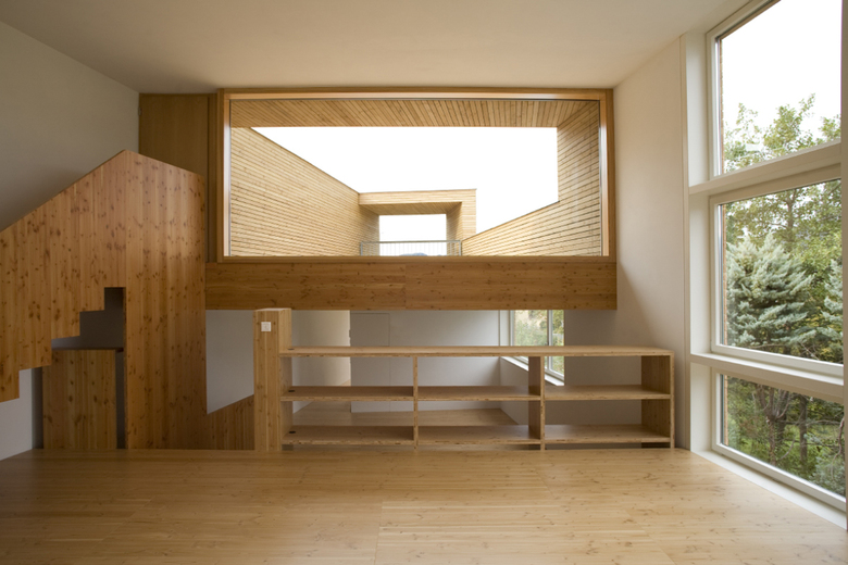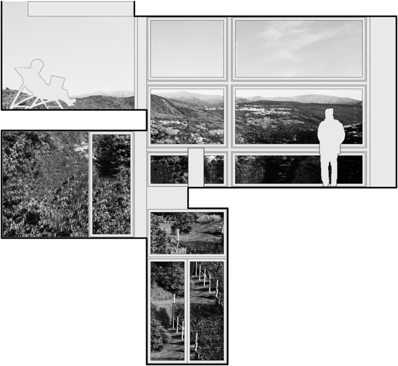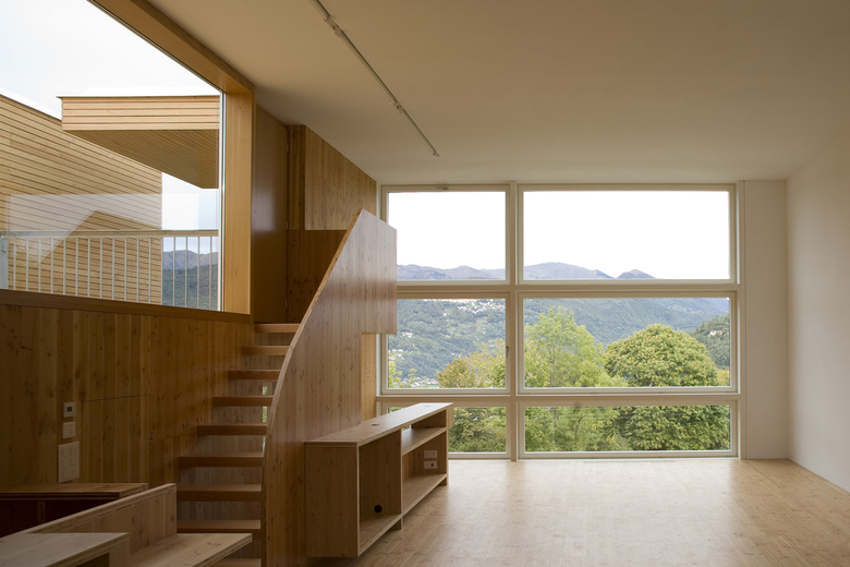 Gli appartamenti sono organizzati su due piani, con le camere al pian terreno e con la cucina e soggiorno al primo piano. Il primo piano è sfasato di un mezzo piano, principio che si ripete tra il soggiorno e il tetto giardino: questo principio permette grazie a uno spazio traversante di circolazione la penetrazione del sole, nonostante gli appartamenti siano orientati completamente verso nord con vista verso il Malcantone.
