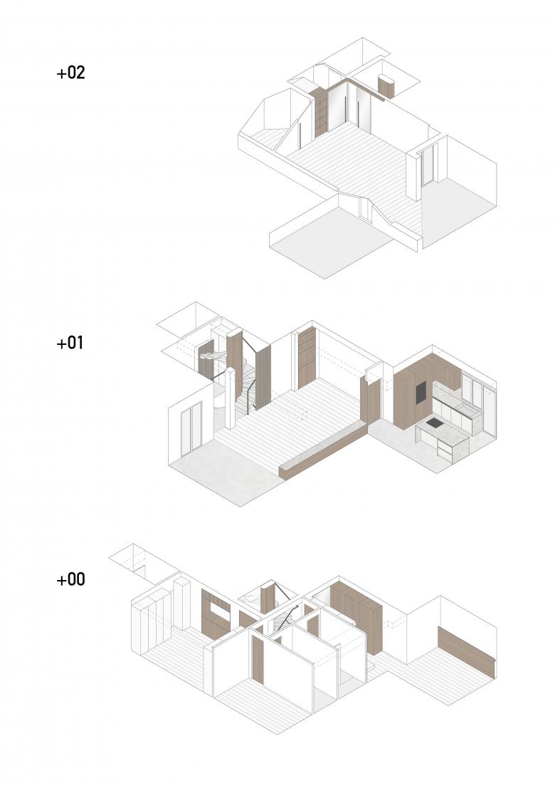 Il nuovo progetto, ha mantenuto all’esterno il carattere originario dell’abitazione, ricercando un sincero rinnovamento affinché gli elementi compositivi originali, potessero risaltare al meglio, attraverso un gioco compositivo di luce, forme e materiali.