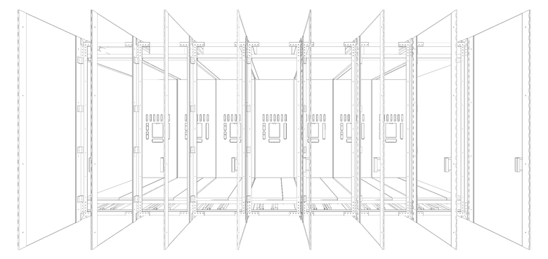 为了空间建造尽量不影响现有办公,而且满足发展不利可空间还原的诉求。最好的办法就是结构可以自稳定,不需要与外界安装固定,避免现场装修。这样可随时移动或挪走,也满足于在工厂完全加工好,搬运到现场放置好、接电即可使用。