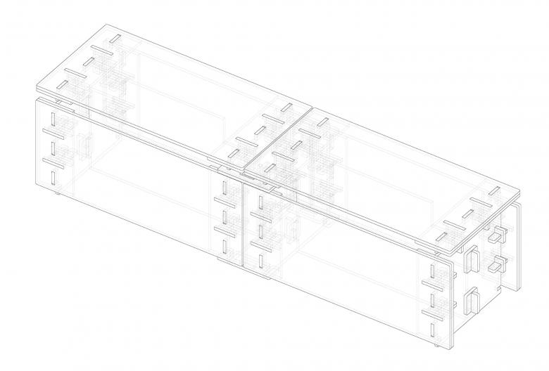 As the 18 different independent bookstores participating in the exhibition have various concepts, it is very important to create diversity through effective design methods, which facilitates not only the distinction between bookstore brands, but also the organization of the exhibition. According to the size of the three spans in the building, three different methods to assemble the display bookshelves were worked out, including vertical-horizontal plugging, front-rhombus plugging and lateral-beveled plugging. In this way, each section of the bookshelves between the three spans is different.