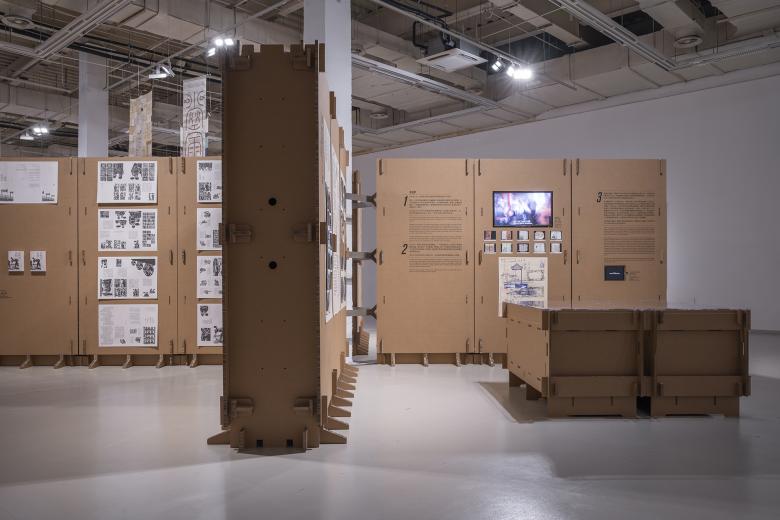 Using cardboards to create an exhibition space, the project tries to avoid construction waste during temporary exhibition program. Highly recyclable corrugated cardboards are assembled with mortise and tenon structures to form walls and stands for the exhibition. Environmentally speaking, it satisfies the requirements of "reduce, reuse and recycle", and the construction of the exhibition space itself has become one part of the exhibits.