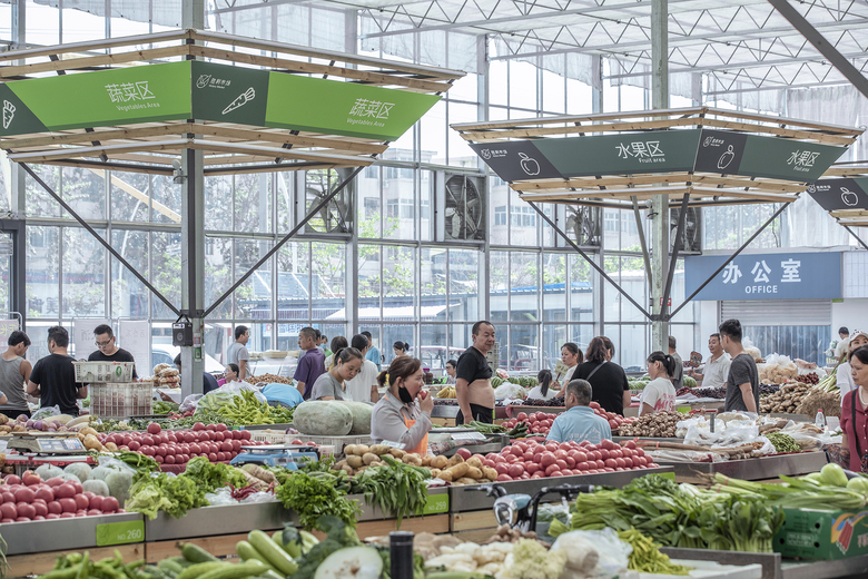 原胜利市场位于城市发展最早的区域之一,历经了好几十年,满足当时人们基本生活需要的老市场现在慢慢成为脏、乱、差和交通拥堵的境况,城市更新也迫切需要对市场所在的老旧片区进行改造。然而各项拆、改、再建设的工作及流程时间将比较漫长。市场所承载的人们生活饮食则每天都不可或缺,快速建造一个满足老百姓生活需要的临时市场,在一段时间内替代原有市场使用,变成一项特别必要并且马上要去完成的工作。