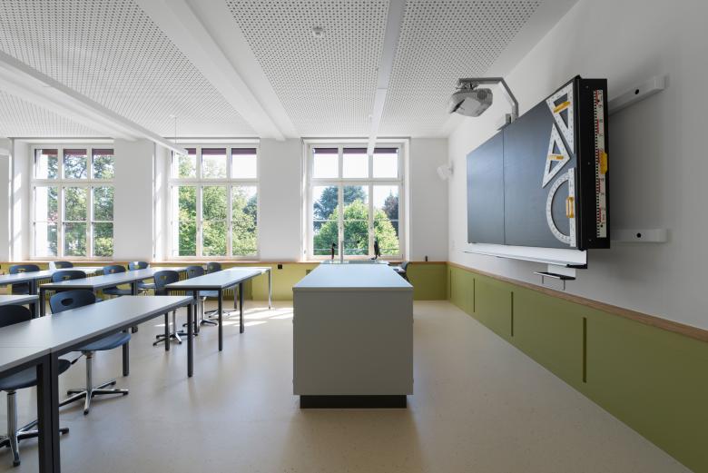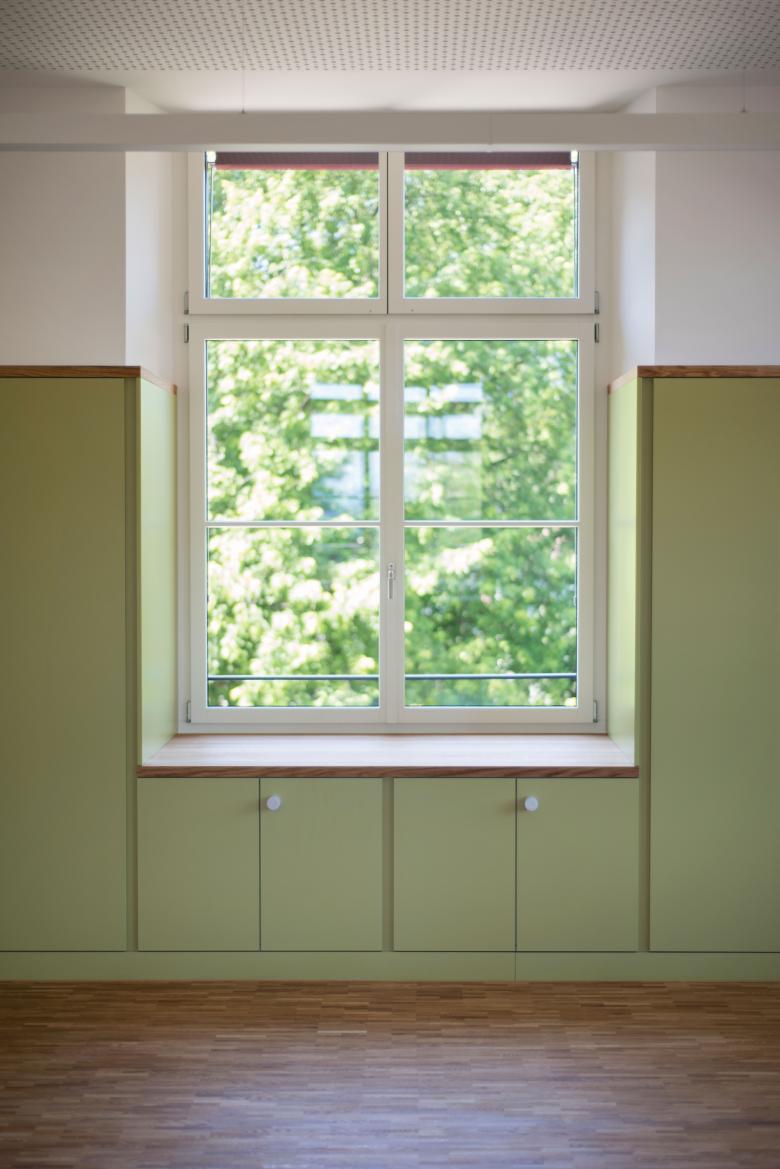 Das Umbaukonzept für das Vogt’sche Schulgebäude Kirchbühl 1 umfasst die Einbeziehung und Aufnahme der Spuren und Qualitäten aus der Originalepoche, dem Klassizismus, und verbindet diese mit den Anforderungen und Bedürfnissen der heutigen Nutzer zu einer neuen architektonischen Einheit. Durch gezielte innere und äussere Eingriffe wurde dem Bildungsbau aus dem Jahr 1900 eine freiere und offenere architektonische Formensprache verliehen, die den Schülerinnen und Schülern ein motivierendes und anregendes Lernumfeld bietet und den heutigen Ansprüchen vollumfänglich entspricht.