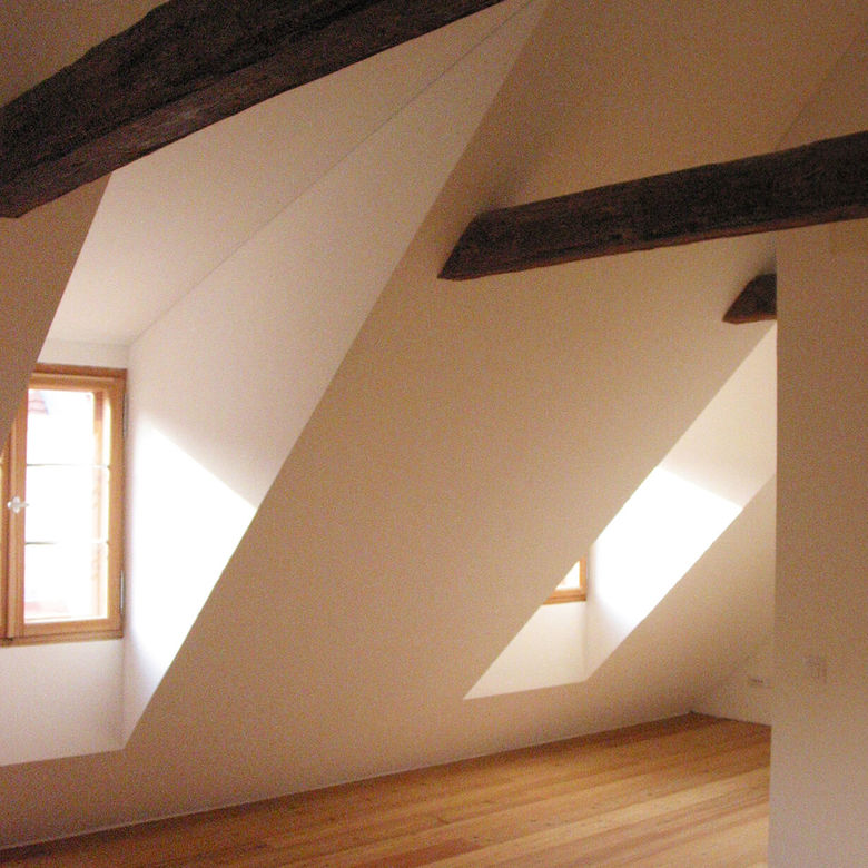 Klein und fein, das soll es sein. Der unscheinbare Anbau des Gebäudeensembles nennt sich K 20 und steht unter Einzeldenkmalschutz, da er um 1800 im Münchener Haidhausen als eines der ältesten Herbergshäuser erbaut wurde. Vergrößern konnte man nur nach unten, verbessern, sprich totalsanieren mußte man alles. Ein behutsamer Umgang mit der historisch wertvollen Bausubstanz und den gestalterischen Maßnahmen war Priorität. Das Material für Fenster, Türen, Böden und Treppen ist einheitlich Lärchenholz. Schwarz und weiß geben den Innenräumen Ruhe. Klare und schlichte Details funktionieren in ihrer Einfachheit. Um so erfreulicher ist der Fassadenpreis 2004, der unter allen Baudenkmälern Münchens auch Platz ließ für eine leise Bescheidenheit in der Stadt.