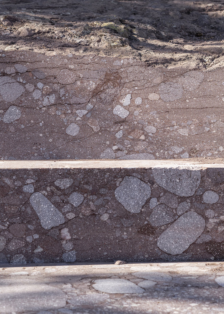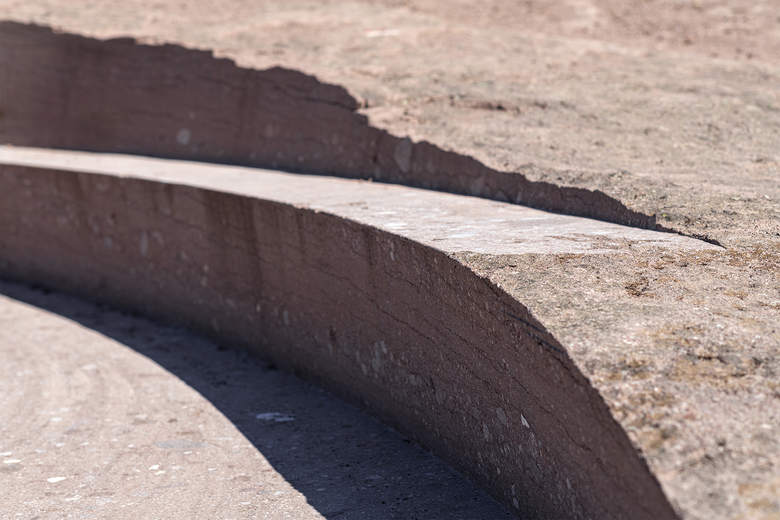 A net of lines is the origin for the wind rose by the designer Antoinette Bader. A petroglyph cut in the even terrain of the porphyry at the intersection of context and intervention opens up a space for thoughts. Symbolically for the complex integration and positioning of the world the incomplete opens up a dialog between nature and man-made, between past and future.