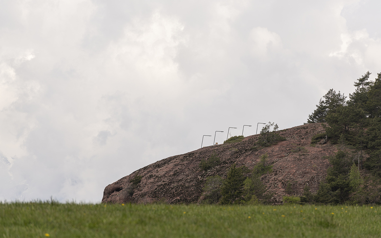From the distance the delicate drawings as a subtle landmark are made visible only through the shadow play.