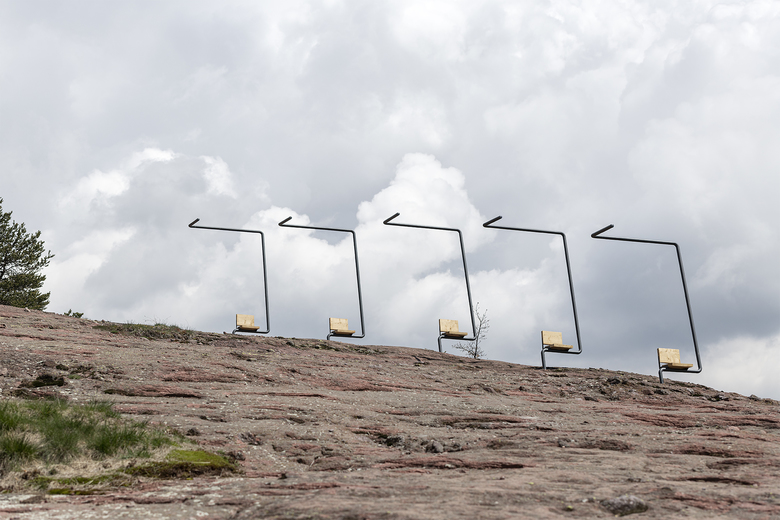 The installation ‚Attimo‘ was realized after the sketches of the late artist Franz Messner and consists in the arrangement of five chairlift seats alongside an imaginary and hazardous route directly over the rocky hill. With a spectacular view on the village the installation creates continuity of the cable car of Vöran and connects the village through a ‚Direttissima‘ with the Beimstein-Knott.