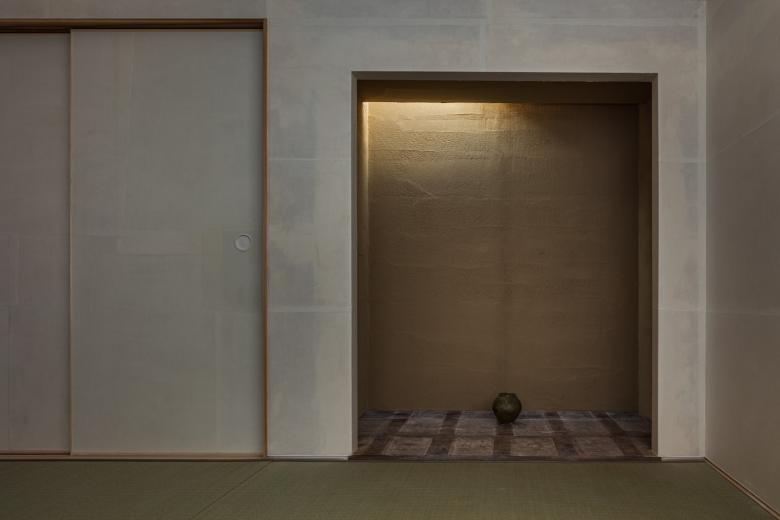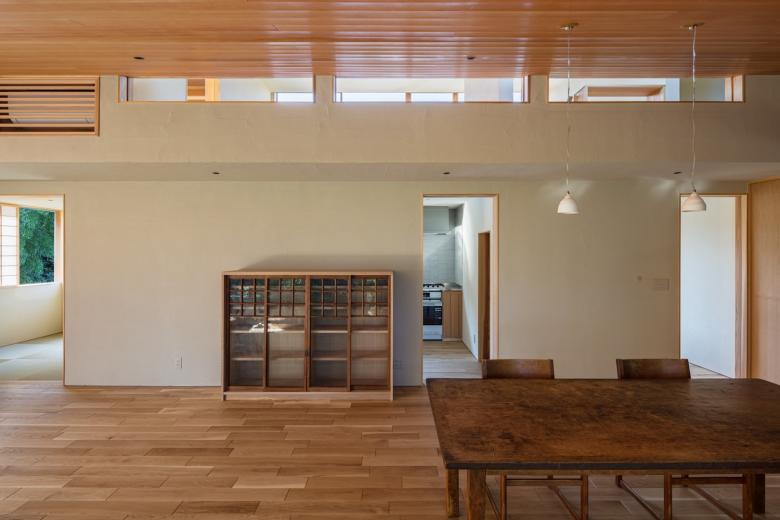 長らくこの場所で創作活動を行い、生活もしている2人にはルーティン化したふるまいが染み付いていて、今回の私たちの設計は、それらをよく観察し、新しい建物として写すこと(マニュスクリプト)であった。結果として東西に長いボリュームを長手に分節し、私的な場所をまとめた2層の主屋と、ギャラリー(玄関)ホール(リビング)を内包する下屋の構成が導かれている。