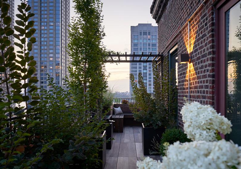 Montalba Architects has created an artful city sanctuary by modernizing a 1920s landmarked penthouse on New York’s Upper West Side. The firm maintained the building’s historic vernacular while renovating a wrap-around terrace, incorporating a marble fireplace, eat-in kitchen and dining room, private gym, and two bedrooms with ensuite baths. The addition of clean, modern millwork and fixtures further accentuates the original coffered ceiling, molding and casing details.