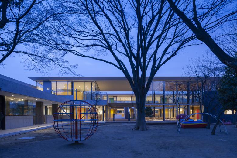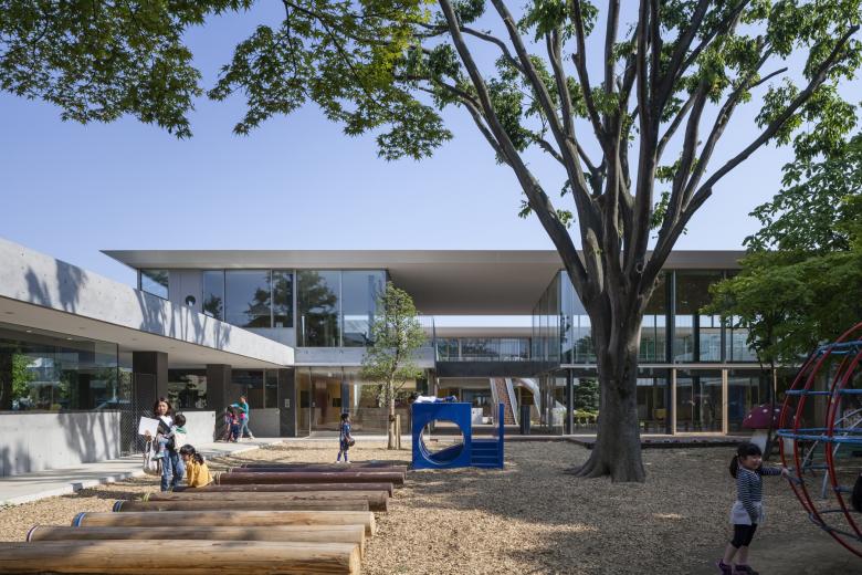 The site is located in a residential area in the west of Tokyo. Surrounded by patches of trees and brush, this is a place where you can feel close to the blended landscape of human habitation and nature. A day-care center was newly built as a nursery.