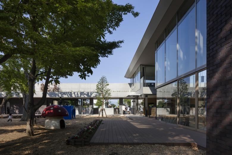 The nursery was designed to be located on the south side of the woods of the Kindergarten. The woods create a space where children can feel and experience various natural events both physically and emotionally.