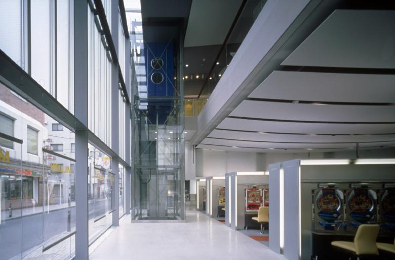 This building is a pachinko parlor situated on a T-junction corner facing the old Kawagoe Highway. The surrounding streetscape no longer features the rows of houses reminiscent of days gone by; instead, it consists of a chaotic jumble of indistinct, small-scale shops. In designing this building, the aim was to manifest the inherent energy latent within this site, nestled within such a landscape, and to create a structure that would serve as the starting point for restoring vitality and order to the streetscape.