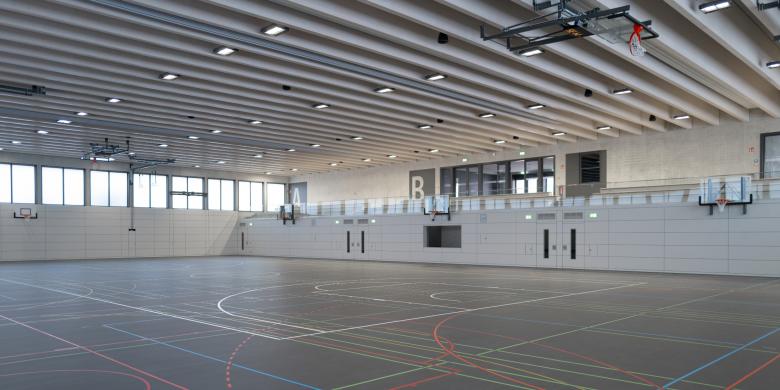 Bei der Sporthalle handelt es sich um eine standardmässige Dreifeldsporthalle mit Tribüne für 199 Zuschauer.