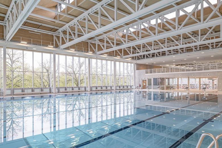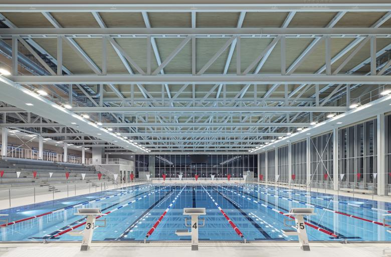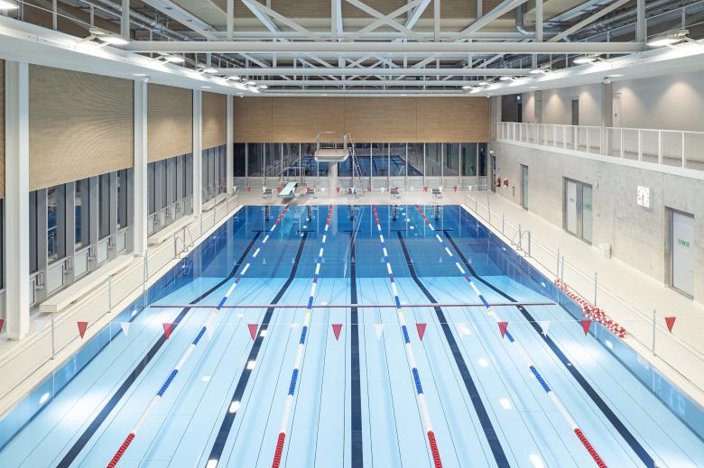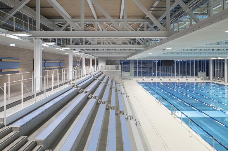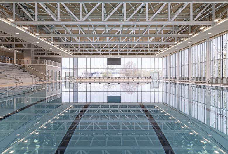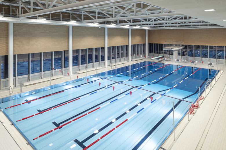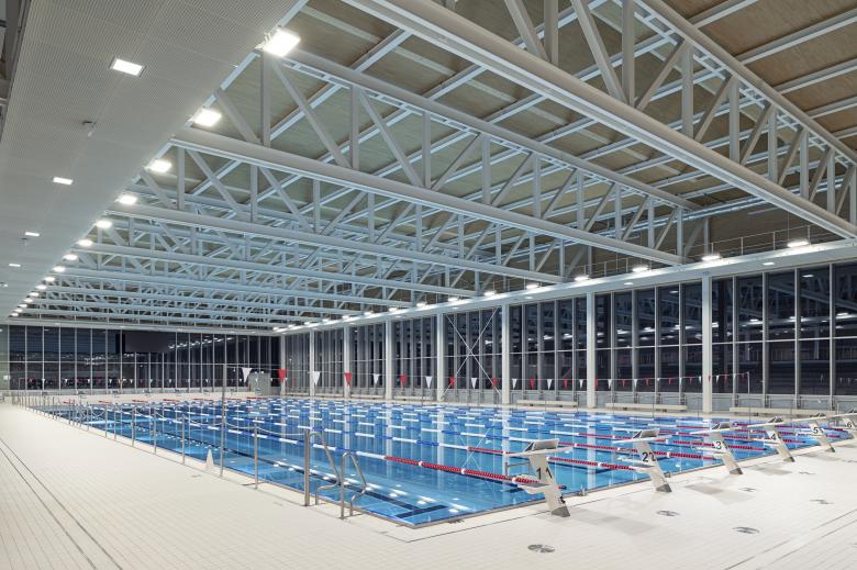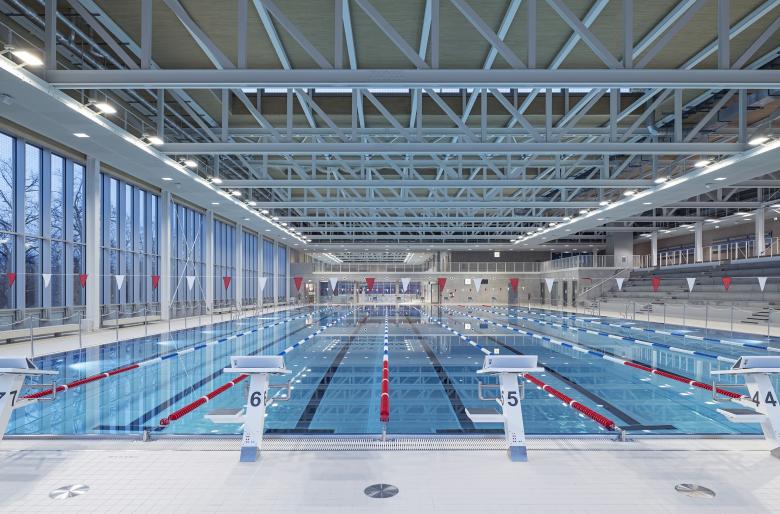 Die neue Schwimmhalle ermöglicht es künftig nationale Titelkämpfe auszutragen. Entstanden sind ein 50m-Becken mit acht Bahnen sowie ein 25m-Becken mit Hubboden und einer Tribüne mit 900 Sitz- und Stehplätzen