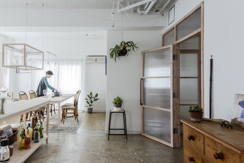 内部の家具や建具は、規格の木材で、大工が一人で製作できるものとし、施主自らがカスタマイズしやすいものとしている。