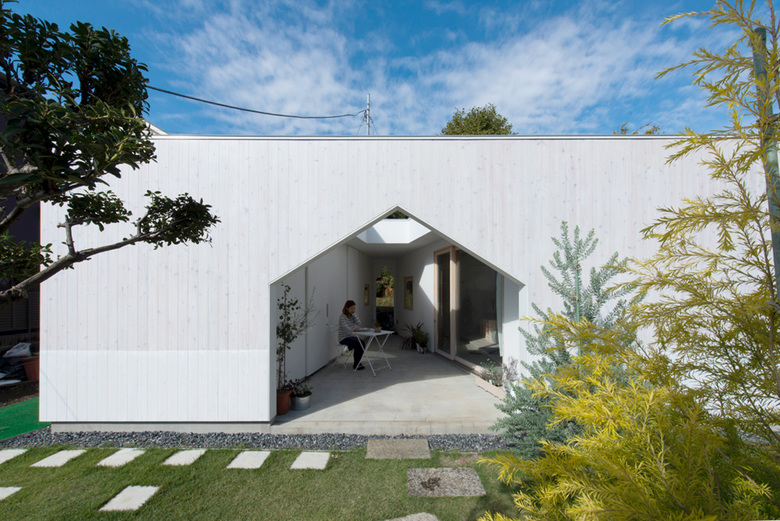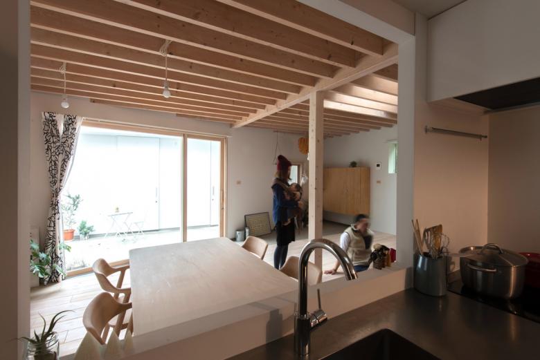 アレイは、空間に奥行きとゆとりを生み、そこではBBQをしたり、何気なくお茶をしたり。上部は屋根がかかっているものの大きな吹き抜けが存在し、夏には程よく日差しを遮り、冬には奥深く暖かい光を送り込んでくれる。雨の日でも歩行ができ、それでいて雨水の落ちる光景も感じれる。そして、綺麗にトリミングされたSORA。