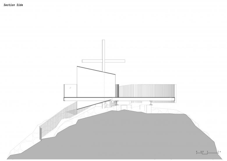 A viewing platform was developed based on a light structure made of Corten steel, giving a modern touch that also blends in with the landscape. The design incorporates the pre- existing summit cross, and the platform only touches the ground where there is a static necessity - creating a detached, almost floating construction which lets you become one with the mountains and breathe in the freedom.