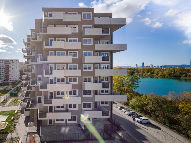 Das Projekt Ber – Wohnbau Berresgasse liegt direkt am Badeteich Hirschstetten und bildet das Tor zum neuen Entwicklungsgebiet Berresgasse. 100 freifinanzierte Wohnungen mit großzügigen Freiflächen in Form von Balkonen und Terrassen formen den Baukörper und sind das prägende Element des Projektes BER. Im Erdgeschoß befinden sich zwei Geschäftslokale sowie großzügige Allgemeinräume.