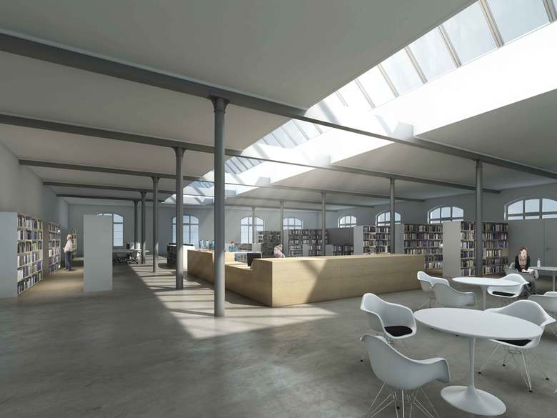 Die geplanten öffentlichen Nutzungen eignen sich ideal für das bestehende Gebäude, profitieren doch sämtliche Haupträume von der Raumhöhe, Transparenz und den bestehenden grossen Oberlichtern, die eine attraktive lichtdurchflutete Gesamtanlage entstehen lassen.