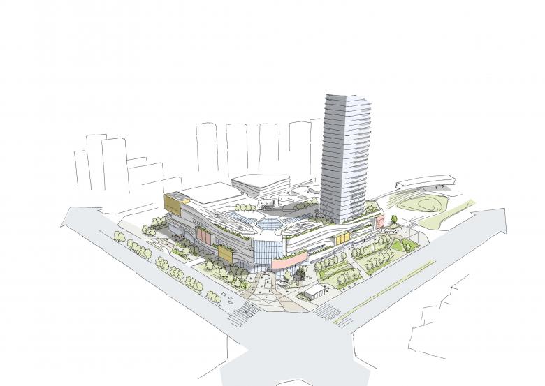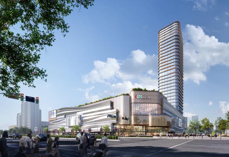 Led by Design Partners Chin Yong Ng (CY Ng) and Lukasz Wawrzenczyk, the retail scheme comprises a mall, a retail street, a culture centre and a 140 m high-rise office tower located atop the Wansheng station, the first station of the Chengdu Metro Line 4’s second phase.
