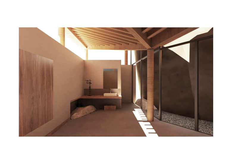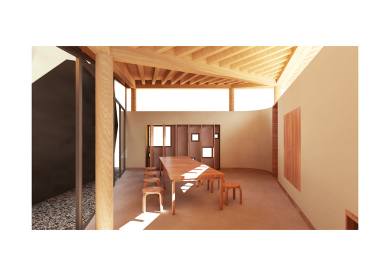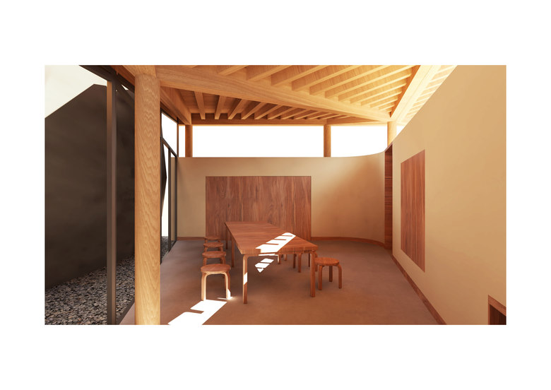 The perception of the space inside of the pigsty is like someone embracing the rock. It’s purely the place to great with the rock. This perception indicates that it will be an introvert space, like a box keep a secret away from the outside.