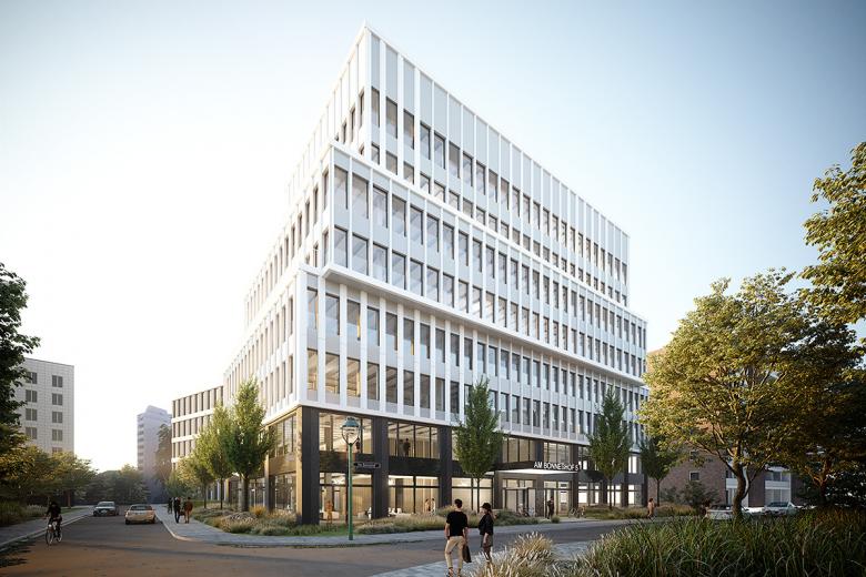 Im nördlich der Düsseldorfer Innenstadt gelegenen Stadtteil Golzheim entsteht ein neues Bürogebäude. Der Baukörper ist in vier zweigeschossige Gebäudeteile gegliedert, die wie Bauklötze spielerisch versetzt übereinandergestapelt erscheinen. Die Gestaltung der Grundrisse schafft eine größtmögliche Flexibilität in der künftigen Nutzung und ermöglicht eine individuelle Anpassung der Büroflächen. Großzügige Dachterrassen bieten eine Aufenthaltsmöglichkeit mit Ausblick. Die Fassaden im zweigeschossigen Sockel werden mit einem dunklen, rauen Naturstein verkleidet, der im Kontrast zu den großflächigen Fenstern steht. In den darüber liegenden Geschossen prägen helle Materialien und vertikale Proportionen die Gestaltung. Weiße Fassadenelemente changieren in unterschiedlicher Breite zueinander, so entsteht ein lebendig-rhythmisches Fassadenbild. Der Bürobau soll nach Fertigstellung das DGNB-Zertifikat für nachhaltiges Bauen in Gold erhalten.