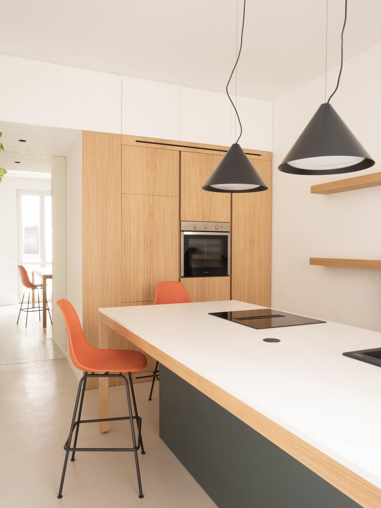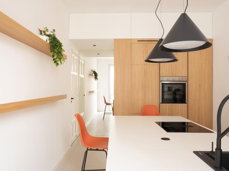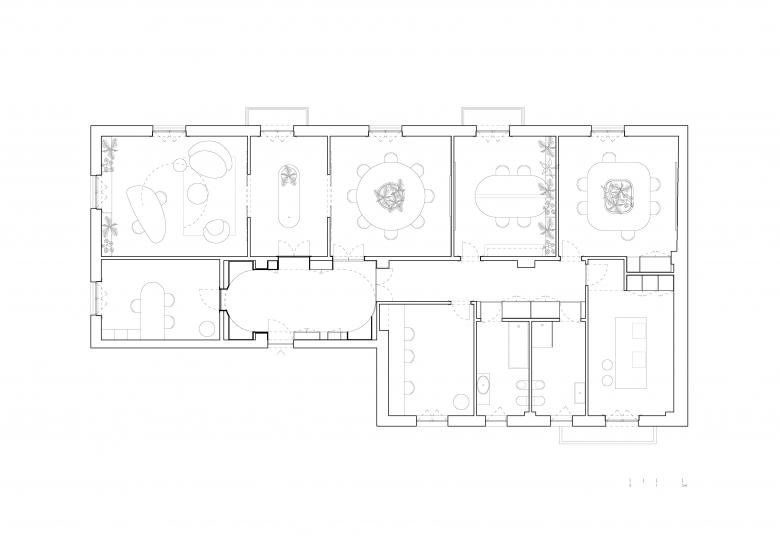 Il progetto di ristrutturazione ha interessato un ufficio di 250 mq destinato a un’azienda attiva nel settore delle energie rinnovabili. L’edificio, risalente agli anni quaranta, si trova in pieno centro e conserva preziosi elementi originali quali soffitti decorati in gesso, porte in legno e pavimenti in graniglia, che sono stati valorizzati come memoria storica e identità del luogo. L’intervento ha mirato a integrare questi caratteri con un linguaggio contemporaneo capace di rispondere alle esigenze funzionali e rappresentative del committente. La distribuzione interna si articola in diversi ambienti di lavoro distinti, una sala riunioni, uno spazio d’attesa e una cucina comune concepita come spazio di convivialità e condivisione. Ogni ambiente è stato progettato su misura, caratterizzato con arredi e soluzioni spaziali capaci di garantire comfort ed ergonomia, senza rinunciare a un’estetica coerente con il contesto.