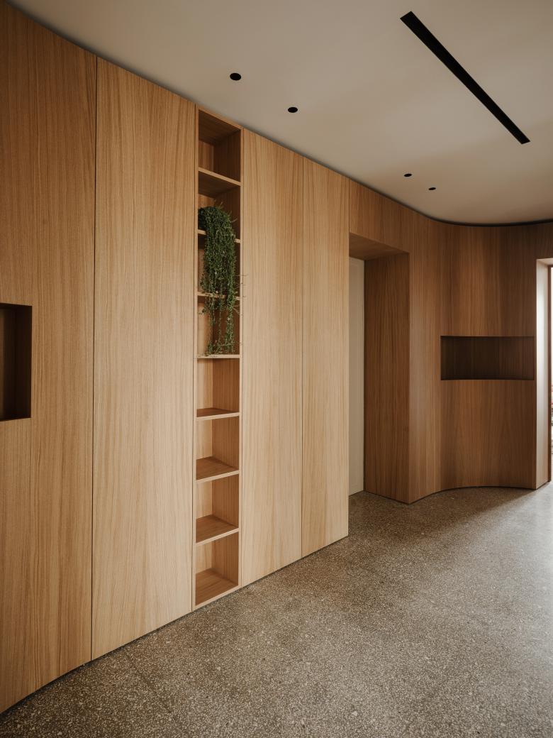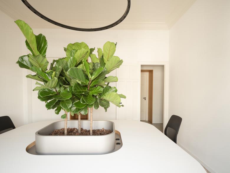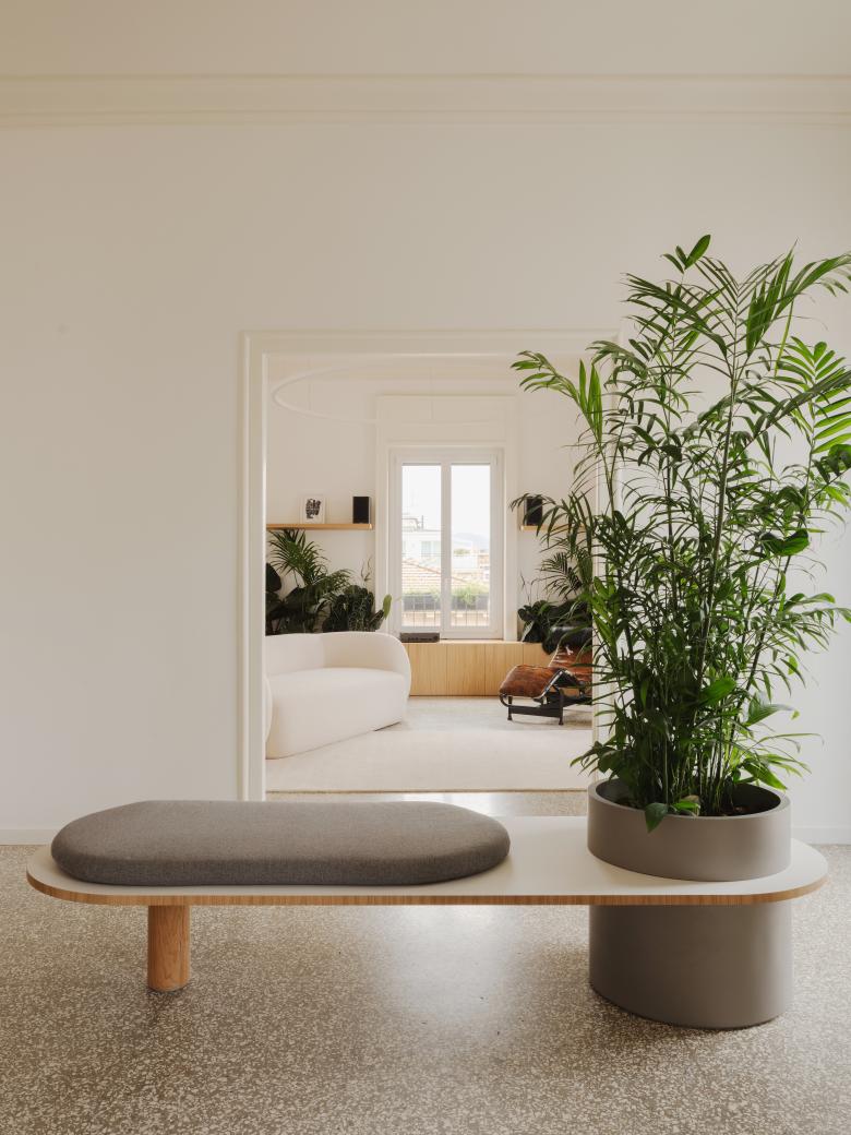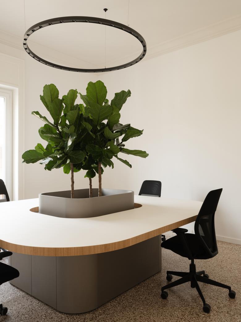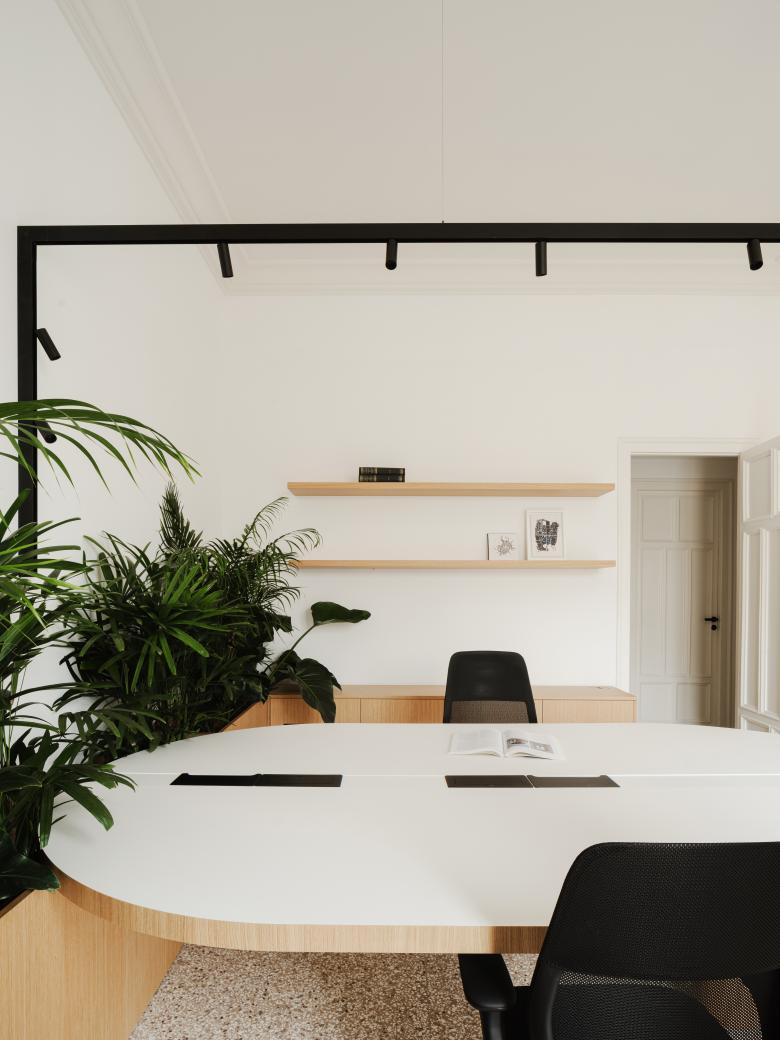 Elemento cardine del progetto è stata l’integrazione del verde, richiesta esplicitamente dal committente, appassionato di botanica. Piante e sistemi vegetali sono stati inseriti come veri e propri dispositivi architettonici, integrandoli negli arredi disegnati su misura: separano gli spazi senza isolarli, migliorano la qualità dell’aria e introducono un senso diffuso di benessere. Il progetto configura un ambiente di lavoro che riflette i valori dell’azienda: sostenibilità, rispetto per l’esistente e attenzione alle persone. Un ufficio che unisce tradizione e contemporaneità, offrendo spazi funzionali, accoglienti e ispirati alla natura.