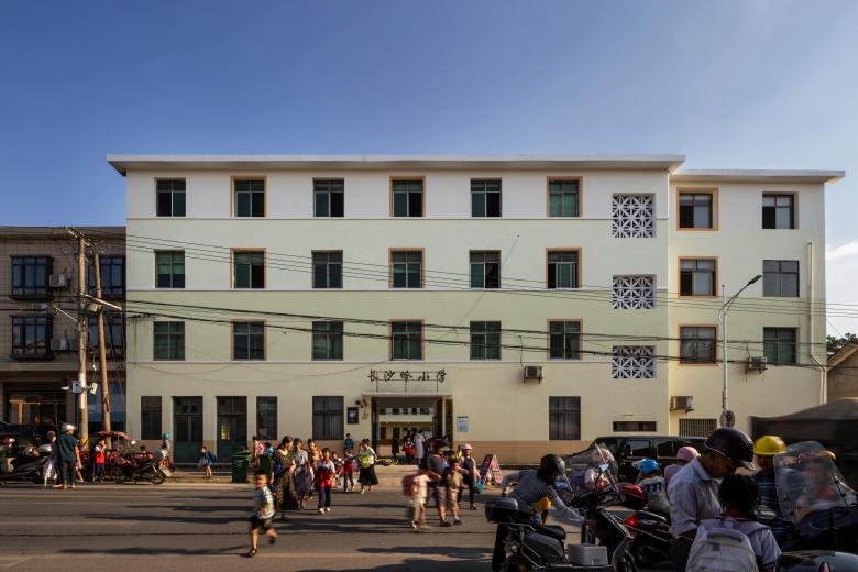 长沙岭小学位于湖南省醴陵市茶山镇长沙岭,原有主体教学楼有两栋,较为老式陈旧。小学所在环境为茶山镇山坡上,周围建筑多为传统砖瓦房。改造缘起立邦“为爱上色”公益项目,我们同时咨询了校方对改善学生们学习环境的需求,对外立面和校园环境进行了更新。作为公益项目,设计方没有收取设计费,同时也基于和校方的沟通,引入外部社会资源和资本为后续校园环境更新助力。