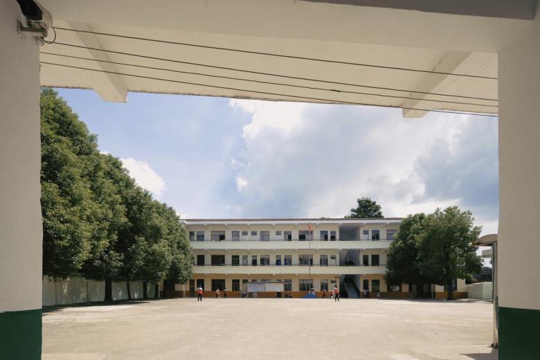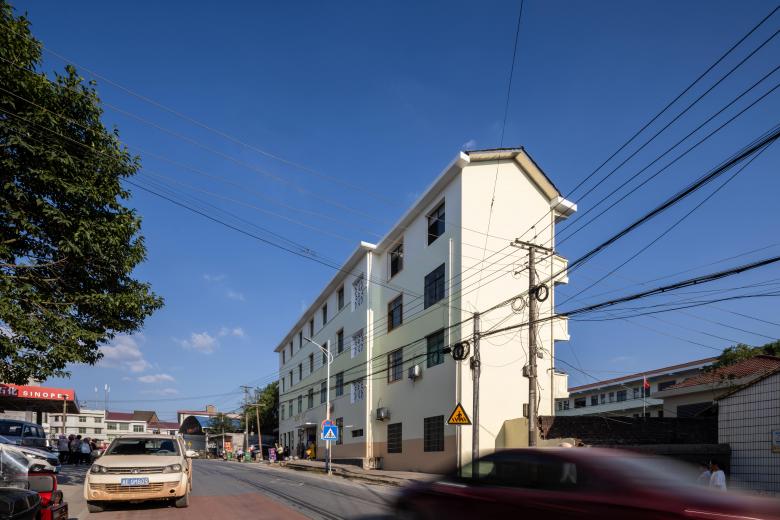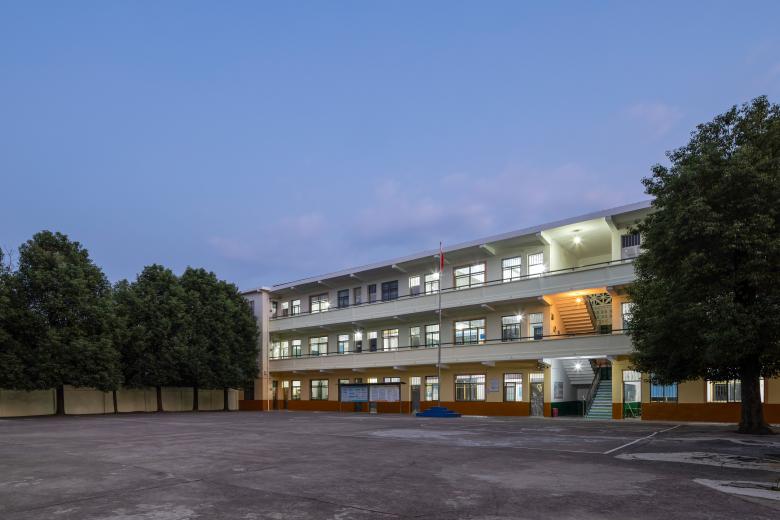 学校地处所在镇主要道路一侧,周边村民自建房趋同性较高。改造需要通过打破原有陈旧造成的审美疲劳,在建筑格局不可变的情况下,将原本老旧的学校,更新为会被孩子们喜爱的学习和玩乐空间。