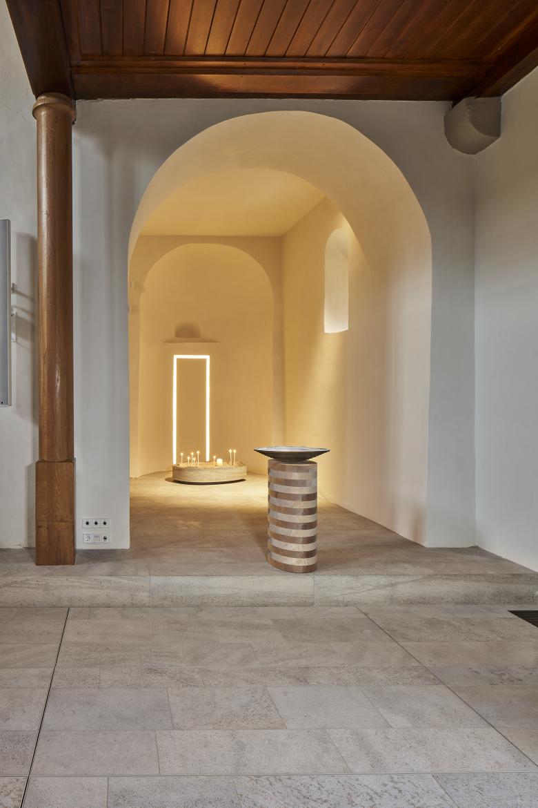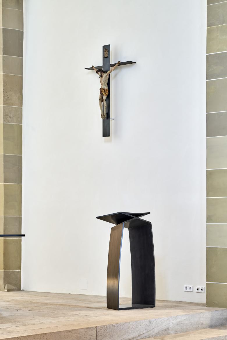 Werke christlich geprägter Künstler aus der Region treten in einen spannenden Dialog mit dem spätgotischen Raum. Das Chorgestühl bleibt in seiner jetzigen Position an den Längswänden bestehen.