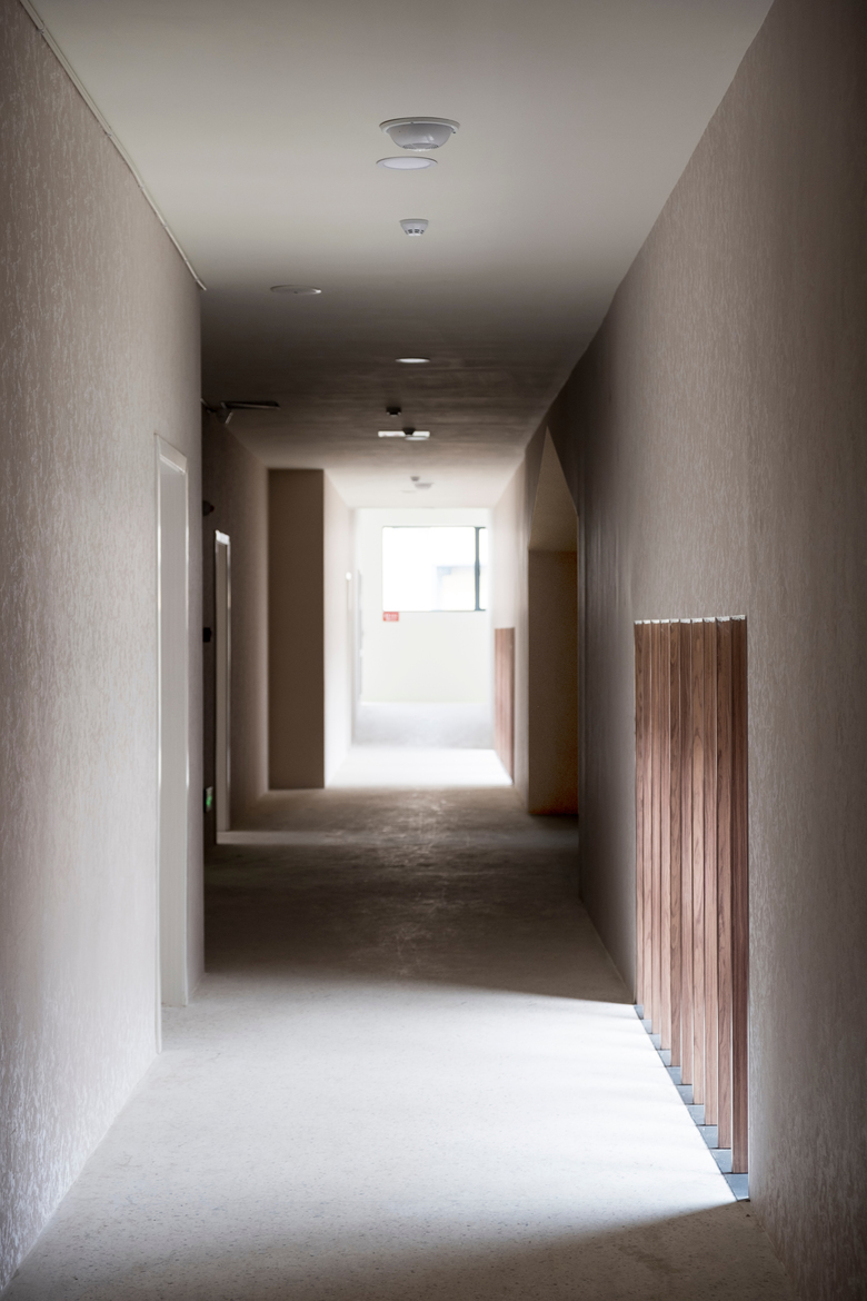 Under these two control lines, the visitor center is arranged in conjunction with the preserved building (museum) to connect the entrance square and the entrance of the performance park with a narrow exhibition corridor. The office part is next to exhibition corridor and set on the south side of the site so that the conference reception can get a better view. While the more intimate part – dormitory – is lined up with the north side. In the center of them, it’s a courtyard space which takes on the program of rehearsal, there are three free standing rehearsal halls.