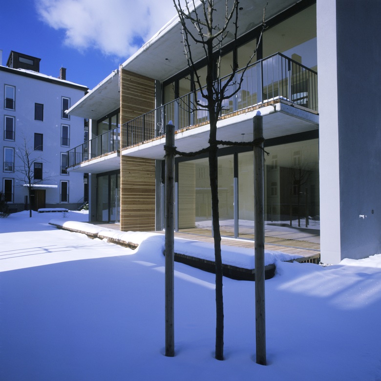 Qualitative innerstädtische Verdichtung mit hochwertigem Wohnraum, Gartenanteil und direktem Tiefgaragen Zugang. Doppelhaushälften von 140 – 160 m² Wohnfläche und flexiblen offenen Grundrissen. Vollverglaste Südfassaden mit Balkonen bzw. Terrassen und außenliegendem Sonnenschutz.