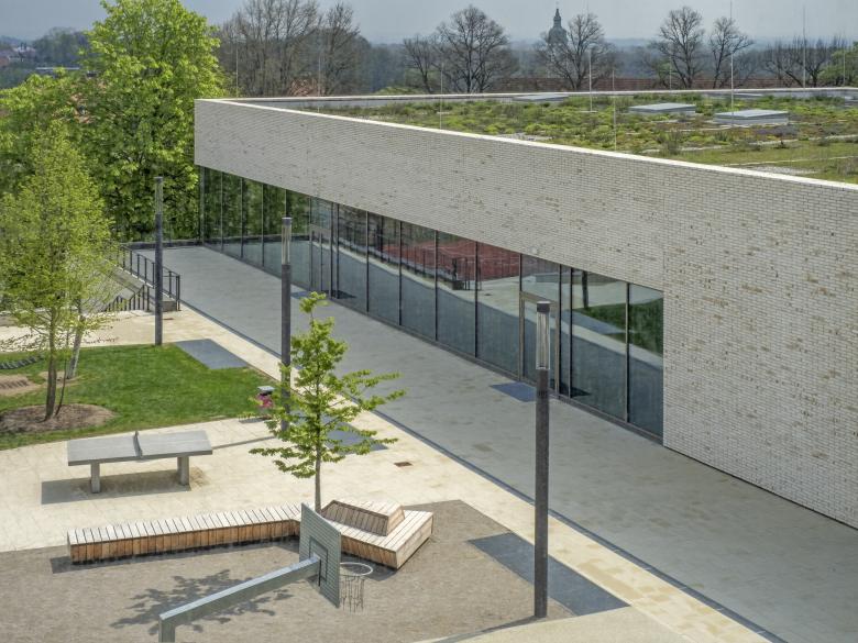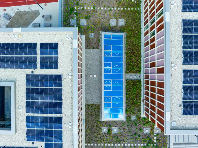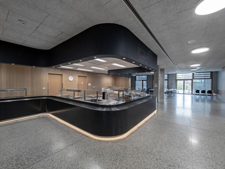 Grund- und Mittelschule mit Mensa, Ganztagesbetreuung, Dreifachsporthalle und Tiefgarage.