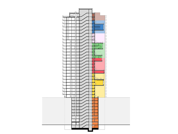 Aufgabe – Wohnhochhaus mit geförderten Wohnungen sowie freifinanzierten Einheiten in den obersten Ebenen