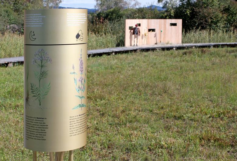 Entlang dem Steg durch das renaturierte Gebiet «Stocklen» am Greifensee tauchen insektenhafte, interaktive Erlebnisstationen auf und laden zum Spielen ein. An Drehtrommeln können die Eigenschaften von Pflanzen oder Wassertieren erschlossen werden, an Hörstationen lauscht man Geschichten aus dem Moor und ein Blick durch das Fernrohr zeigt Spuren der frühzeitlichen Besiedlung am See. raumprodukt hat die Stationen designt, die Vermittlungsspiele entwickelt und grafisch umgesetzt.