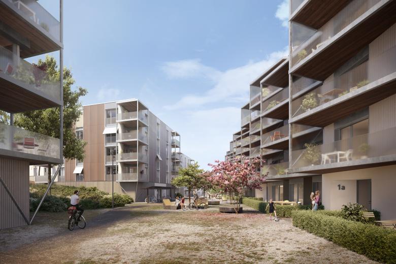 Grosszügige Aussenräume mit einem beeindruckenden Baumbestand bestimmen das Quartier. Die öffentlichen Durchgänge werden optimiert und mit einheimischen Bepflanzungen aufgewertet. Die entstehenden Aufenthaltsbereiche können gemeinschaftlich und vielfältig genutzt werden.