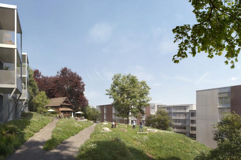 Die Konzeptansätze bilden drei unterschiedliche Bautypen für insgesamt 160 Wohneinheiten. Die Überbauung Neuschwand soll Wohnraum für Familien, junge und ältere Paare sowie Singles jeden Alters bieten. Unterschiedliche Wohnformen werden sich hier in Miet- und Eigentum zusammenfinden. Im Innern der Überbauung entstehen eine attraktive Begegnungszone und eine parkähnliche Anlage. Locker angelegte Fusswege verbinden die Häuser miteinander. Die Lage ist äusserst beliebt und bestens erschlossen mit Einkaufsmöglichkeiten, Gastronomie und Schulanlagen.