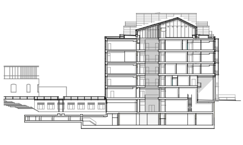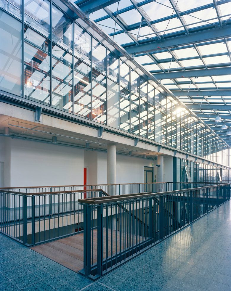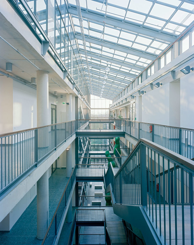 Der 6-geschossige Neubau ist in den Regelgeschossen als 5-Bund ausgebildet. Flexibel nutzbare Labor- und Büroeinheiten sind nach Arbeitsgruppen unterteilt, begrünte Zonen fungieren als kommunikative Bewegungsflächen. Im Eingangsgeschoß befinden sich die öffentlichen Nutzungen wie Hörsäle, Praktikumsräume und Bibliothek. Vertikale Lufträume verbinden öffentlichen Bereiche mit den Institutsebenen. Das Dachgewächshaus verzahnt sich in der Vertikalen mit der inneren Erschließungsfuge.