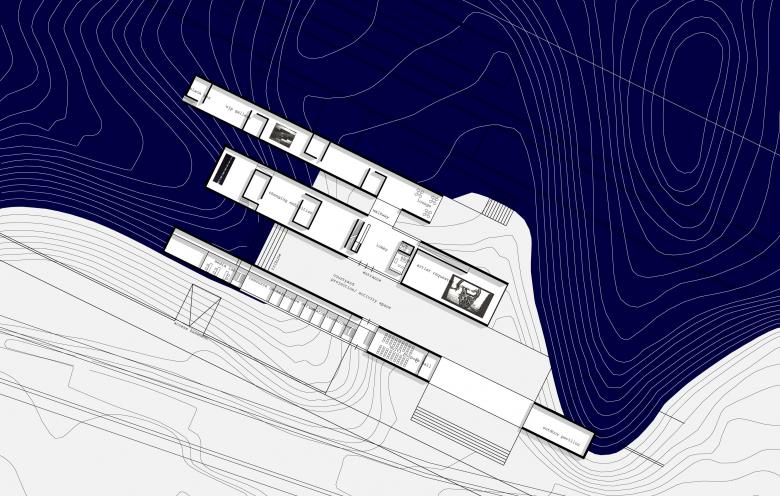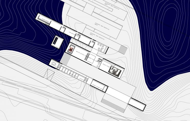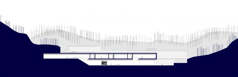 Therefore, different levels, plateaus, terraces and building elements are integrated into the existing topography of the site to contrast to the untouched open area. This creates an interacting dialogue of art and landscape which offers the visitors attractive view connections between in and outside, transparent and closed building parts and the sceneries.