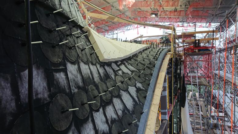 Beim Bau zeigten sich die Qualitäten von Combar, das gestalterisch neue Dimensionen eröffnet: Die doppelt geschwungene, gegenläufige Schale in Sichtbeton dreht sich als Dach-Wandkonstruktion von der Horizontale in die Vertikale. Als Schalungsform für die fugenlose Konstruktion diente eine speziell angefertigte Holzunterlage, auf die die Betonschichten unter Einarbeitung von Carbonfaser-Bewehrungsgittern im Spritzbetonverfahren aufgebracht wurden.